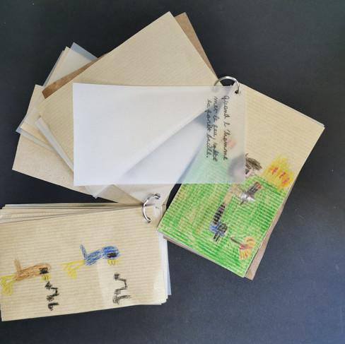 On fait des carnets, des petits livres qui ont des formes différentes avec des écritures et des dessins dessus.